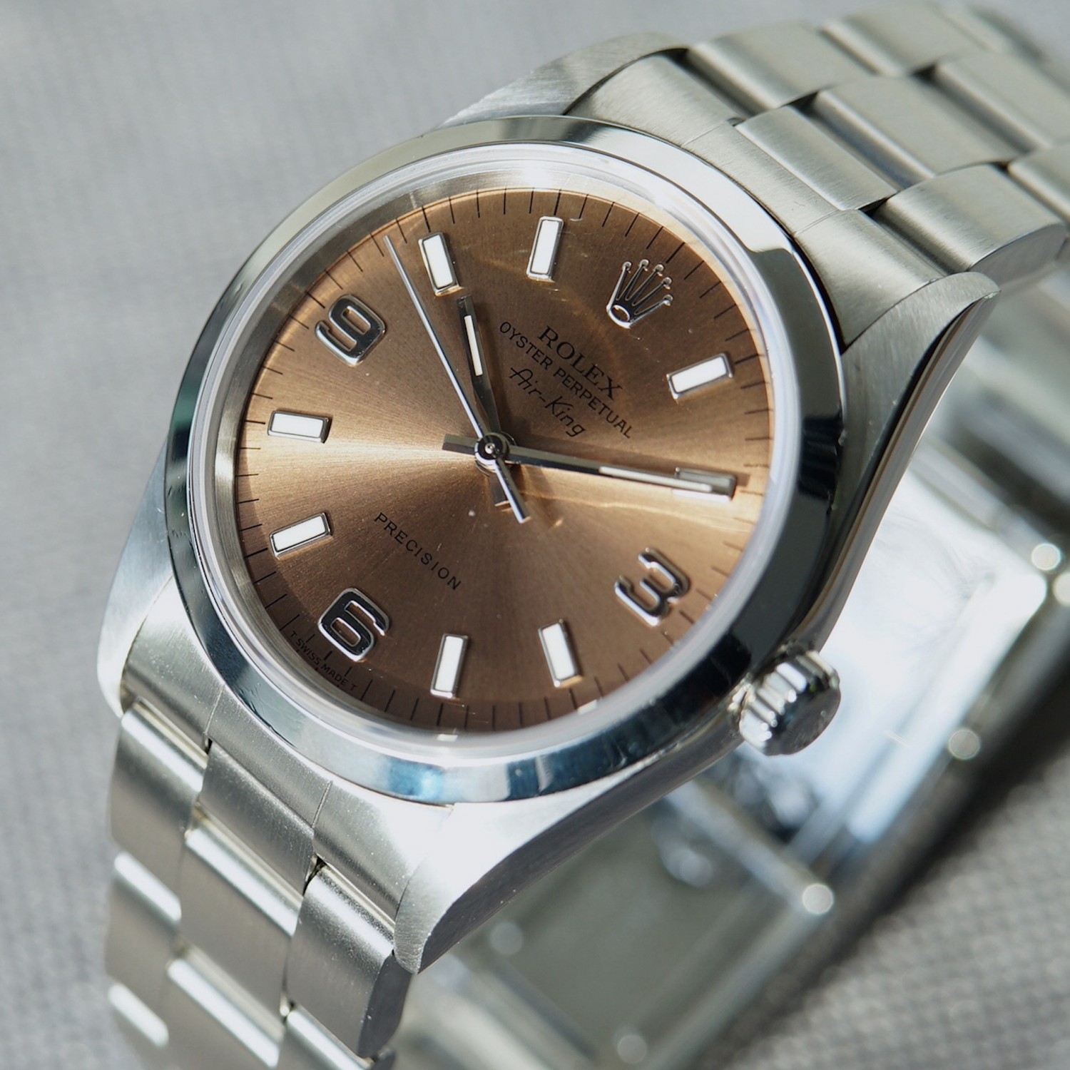 Rolex Air King 14000 cadran rose avec boite & papiers