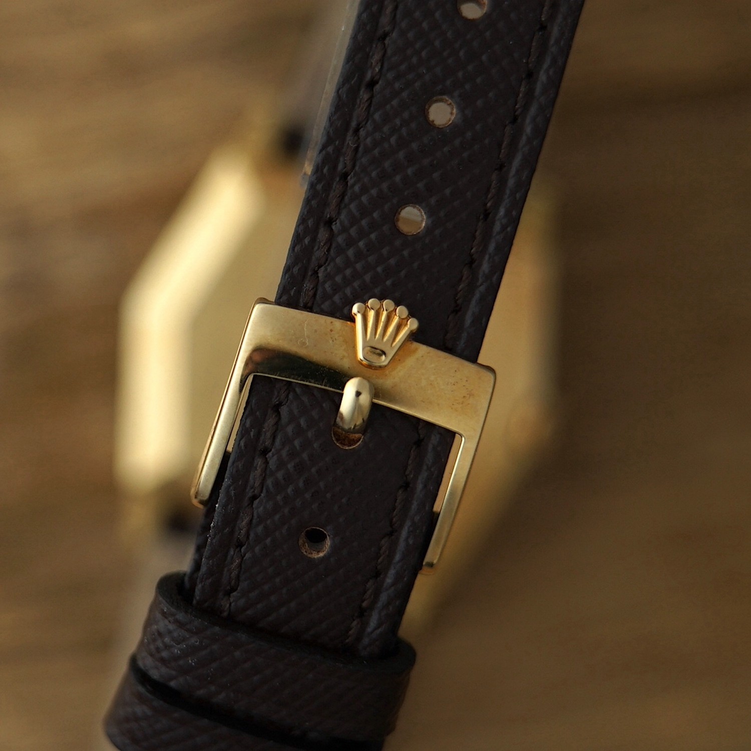 Bracelet cuir avec boucle Rolex ardillon en or 18k.