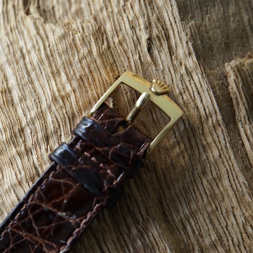 Bracelet cuir avec boucle Rolex ardillon en or 18k.