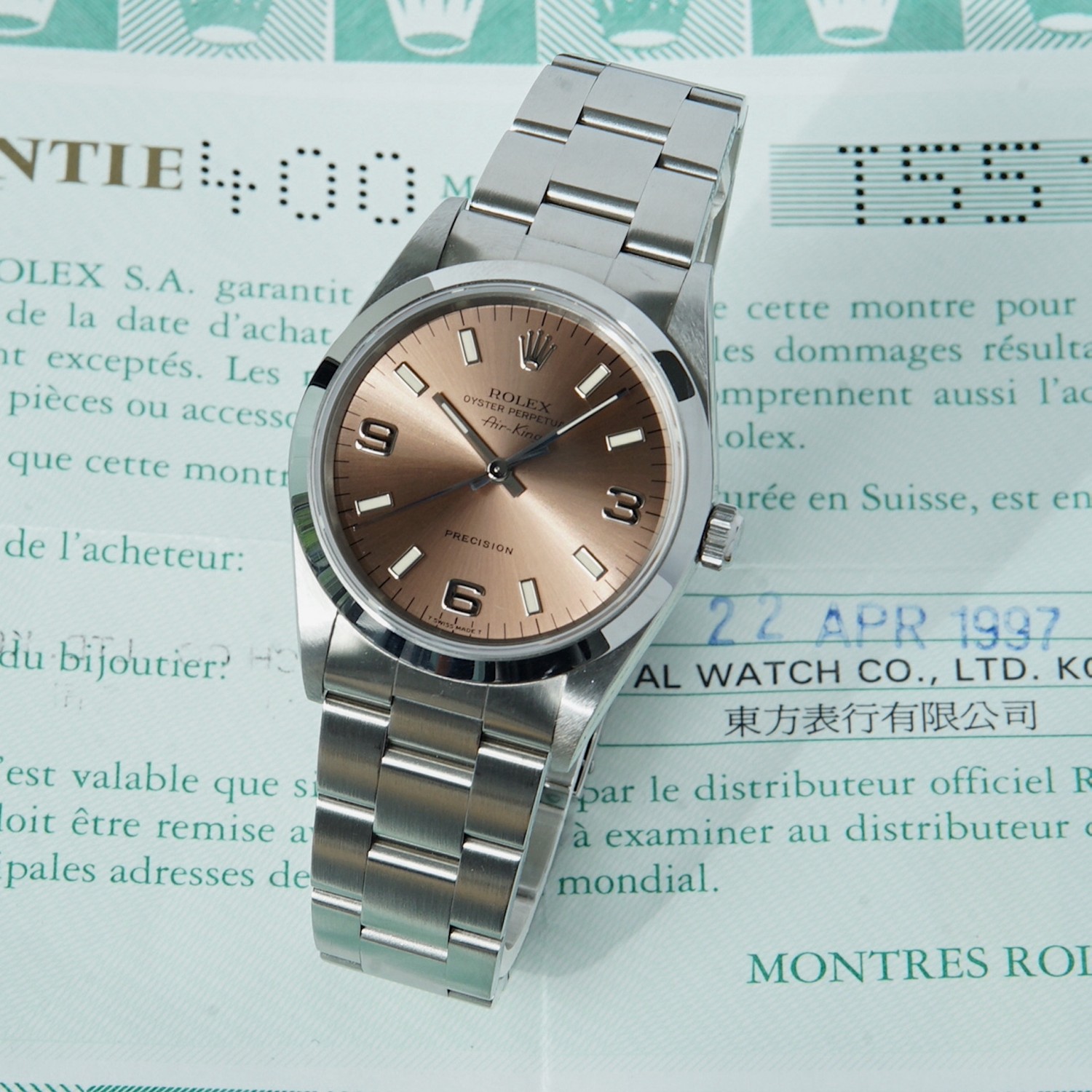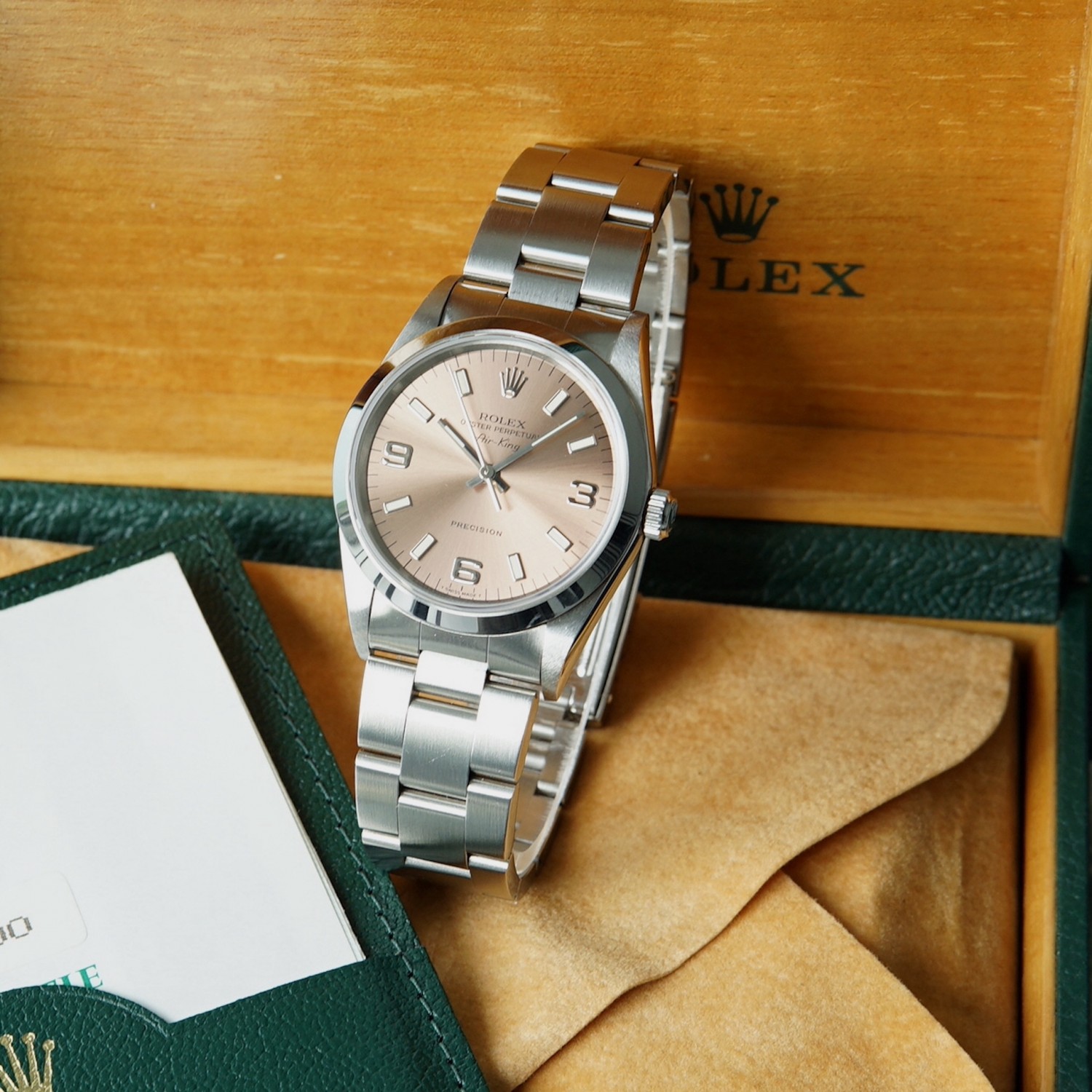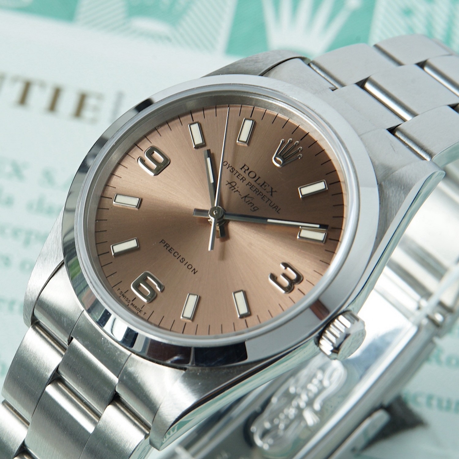 Rolex Air King 14000 cadran rose avec boite & papiers