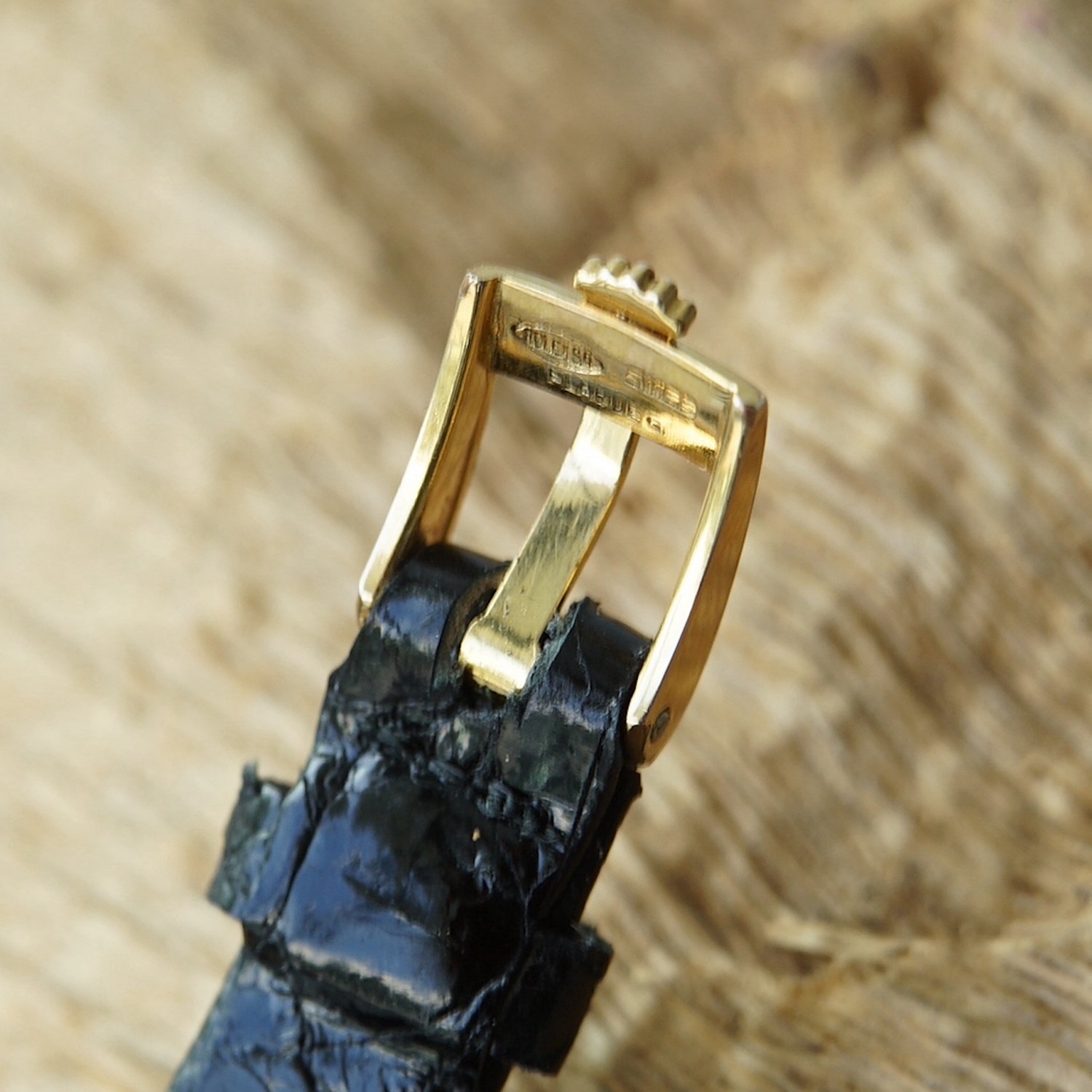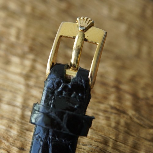 Bracelet cuir avec boucle Rolex ardillon en plaqué or.
