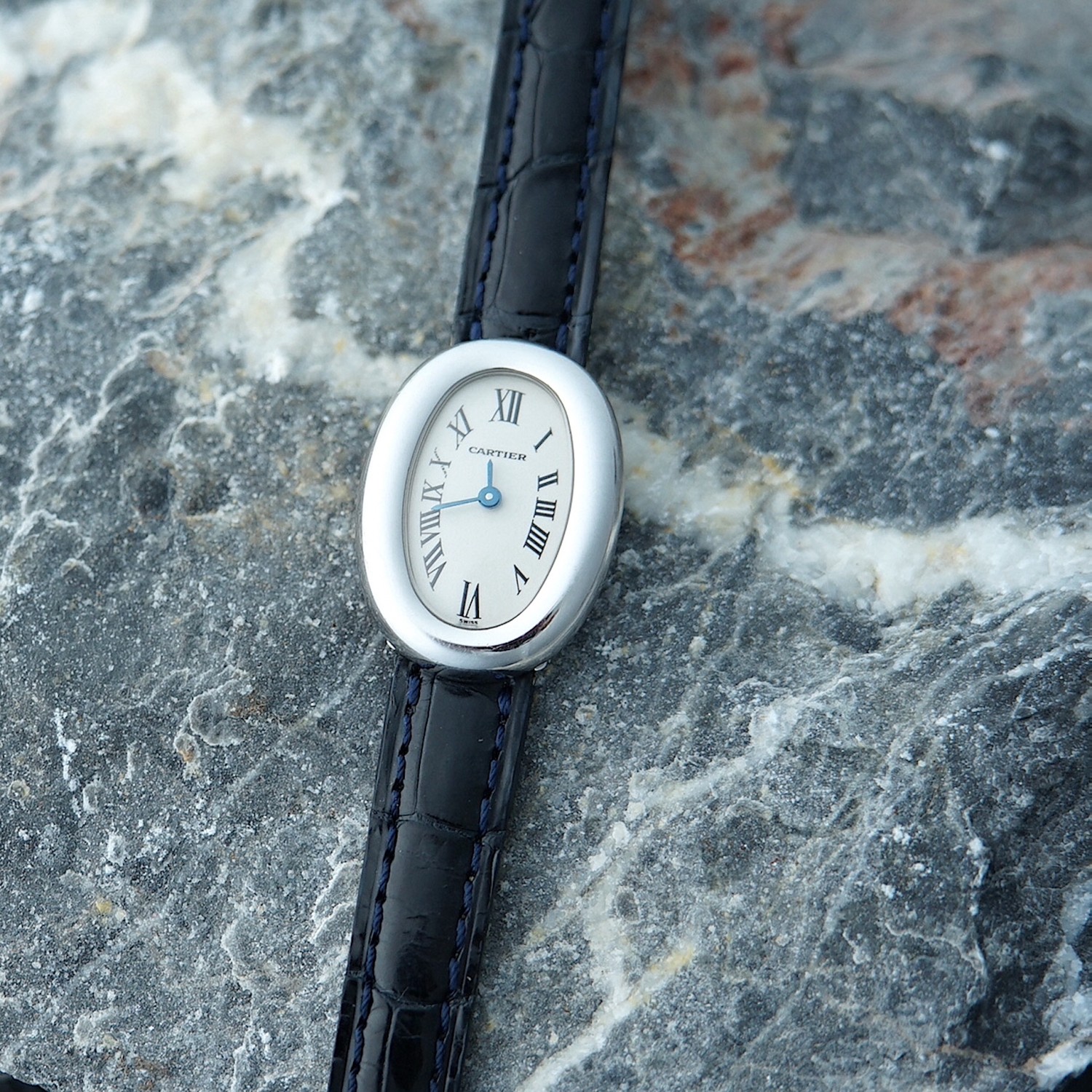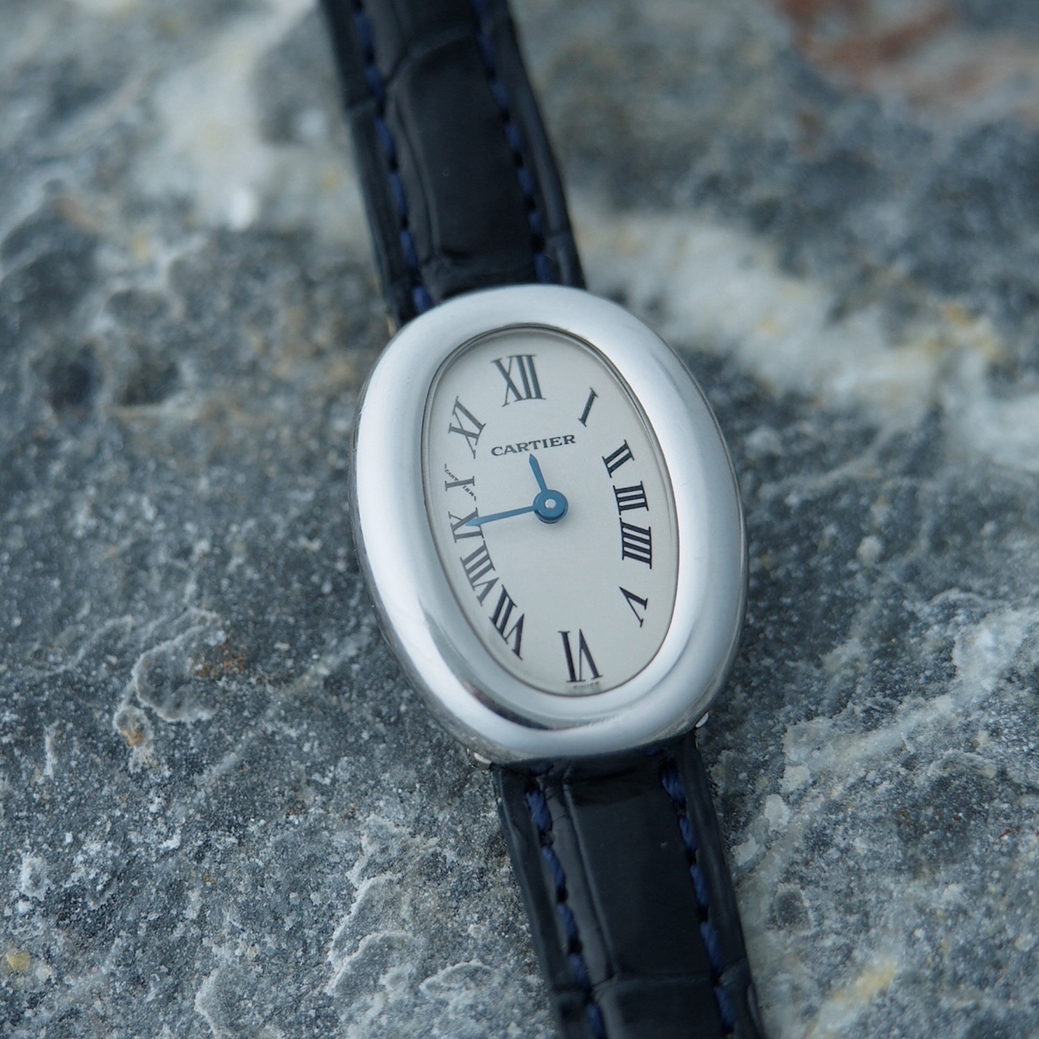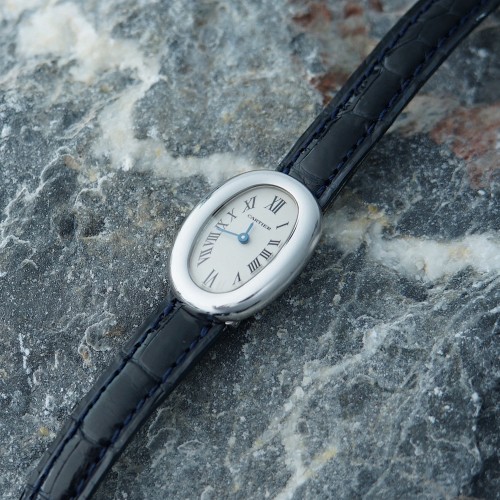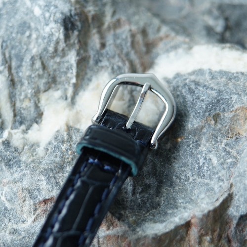 Leather blue bracelet with 18k golden ardillon Cartier buckle.